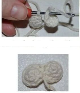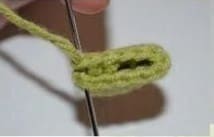 Insira a agulha ao longo da 15ª volta e de volta no mesmo ponto entre as bochechas