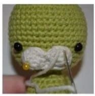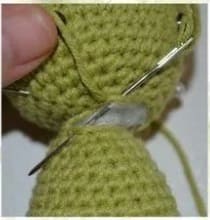 Costure a cabeça ao corpo inserindo a agulha dentro e fora dos pontos.