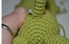 Costure a antena na carreira 6 da cabeça com cerca de 5 pontos de distância.