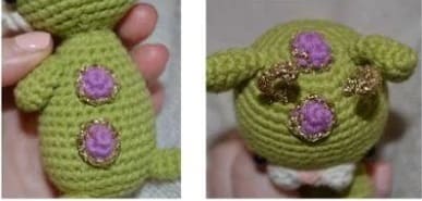 A cabeça e as costas do gato amigurumi receitas com aparência de lagarta são feitas em crochê em detalhes. Fio verde é usado. As antenas são tricotadas com fio dourado. Os brinquedos amigurumi serão os melhores companheiros de brincadeiras para as crianças. Você pode obter ajuda com este brinquedo amigurumi enquanto conta contos de fadas. Obrigado ao criador do brinquedo amigurumi gato grátis.