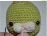 Puxe-o apertado por toda parte. Quando terminar, passe a agulha pelo corpo e esconda a cauda.