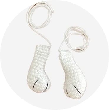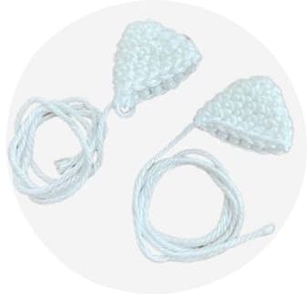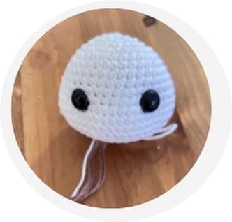 • Fios de algodão em branco/preto/azul para os olhos, rosa para o nariz e bochechas