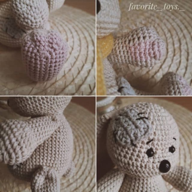 Costure a cabeça ao corpo para que os aumentos e diminuições fiquem no centro. Orelhas costurar entre 9 e 10 linhas na parte de trás da cabeça, a distância entre as orelhas é de 7 pb.