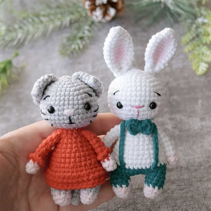 Gato e Coelhinho Amigurumi