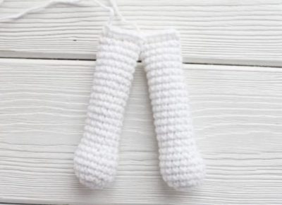 Em seguida, crochetar mais 3 pb e fazer 2 pc e ligar à primeira perna.