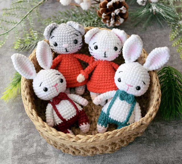 Um dos padrões de crochê amigurumi gratuitos que compartilharemos hoje é o gato e o coelho amigurumi, cujas fotos e design pertencem à Matveeva Toys (VK). Você pode aprender a fazer crochê esses crochê de gato e coelho usando o padrão de amigurumi grátis. Obrigado à querida Viktoria Matveeva por este lindo gato e coelhinho.