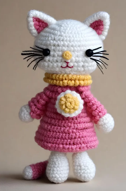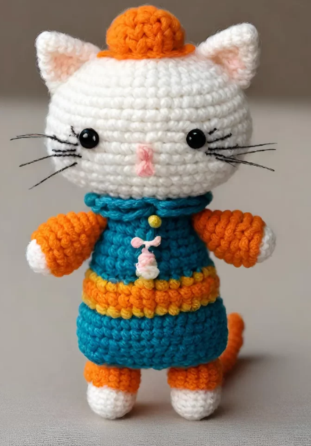 ✨ Adequado para crocheteiros de todos os níveis, do iniciante ao avançado. ✨ Fios coloridos para dar vida à personalidade do seu gatinho. ✨ Pequenos detalhes apaixonantes, como olhos brilhantes e um coraçãozinho.