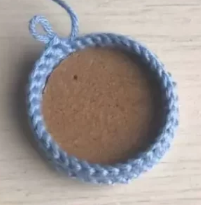 Crochetar a segunda parte. Corte dois círculos de papelão no tamanho certo.